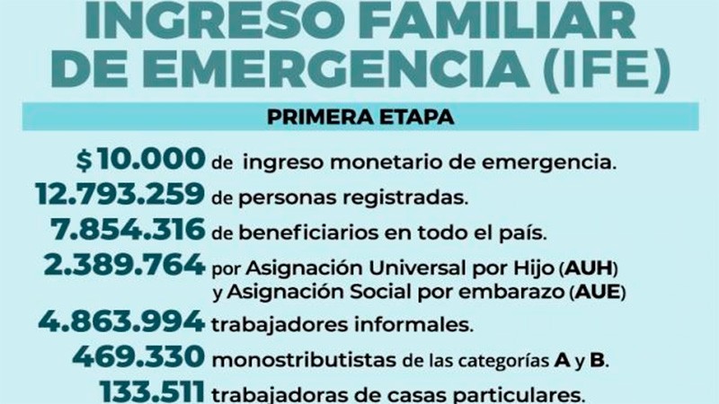 Analizan que algunos beneficiarios del IFE cobren 20.000 pesos de una sola vez