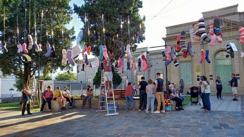 Vecinas y vecinos de nuestra localidad fueron acercando medias de distintos tamaños, colores y diseños. Con ellas, se fabricaron “cromosomas”. Estos fueron dispuestos en la Plaza Centenario, junto a diversos carteles que muestran mensajes referidos a la temática.