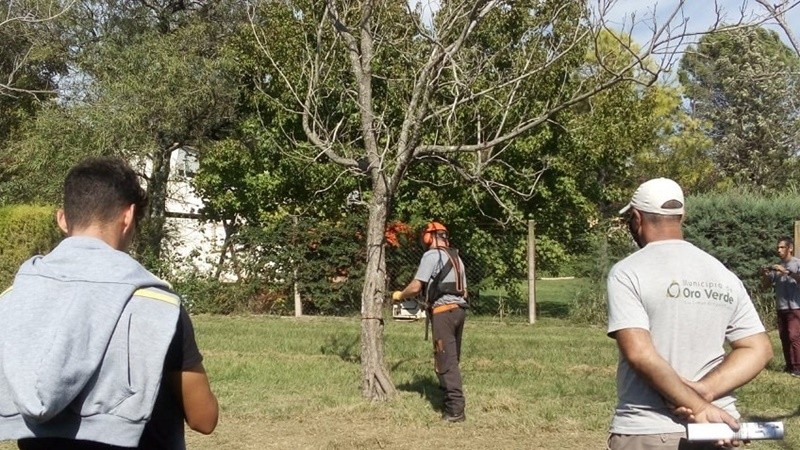 Con motivo de prepararse para la próxima temporada de poda de árboles, el personal municipal participó de esta capacitación, en la que aprendieron acerca del uso de motoguadañas, motosierras y otras herramientas de poda; sobre los sistemas de seguridad y cuidados, tanto para el personal que las utiliza como los relacionados al buen mantenimiento de las maquinarias.