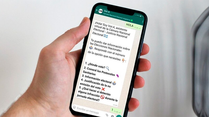 De acuerdo al comunicado, a través de un asistente automatizado en WhatsApp denominado “Vot-A”, se responderán consultas y/o dudas respecto al lugar de votación, documentos válidos para votar, autoridades de mesa, cómo hacer denuncias en caso de algún incidente y cómo justificar la no emisión del voto.