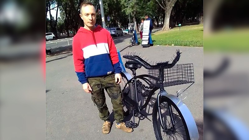 Un herrero de la ciudad de Rosario, le puso clavos al asiento y al manubrio de su bicicleta para evitar que se la lleven cuando la deja atada a un árbol o poste. Según contó, le robaron al menos 10 veces.