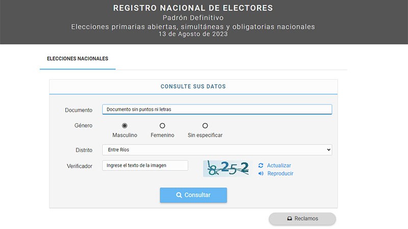 La Cámara Nacional Electoral (CNE) informó a mediados de julio que ya estaba disponible el padrón definitivo para las elecciones nacionales 2023 que, en el caso de Entre Ríos, también incluye las provinciales.
