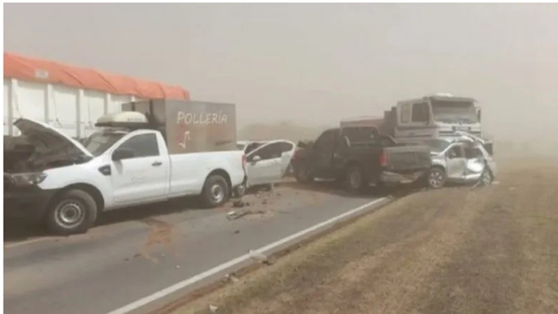 El choque en cadena se registró en el marco de vientos de hasta 75 kilómetros por hora y una importante cantidad de polvo en suspensión que reducía en forma drástica la visibilidad.