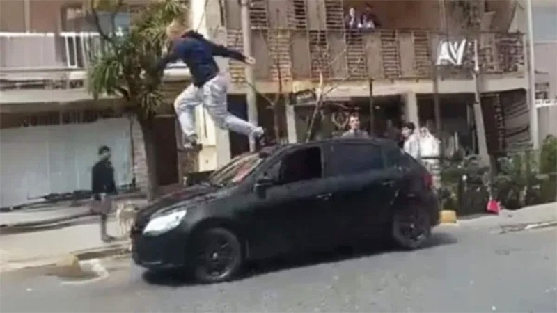 Tras discusión de tránsito saltó en capot de un auto: le suspendieron licencia