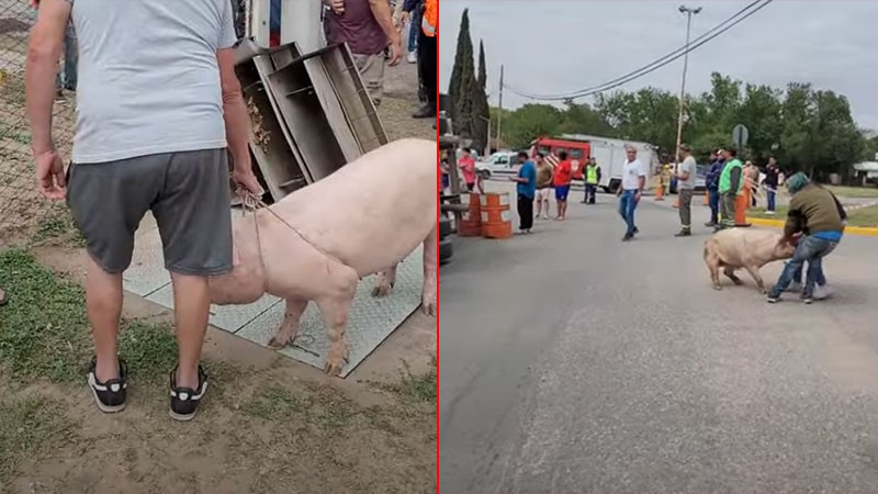 Volcó un camión que trasladaba cerdos y vecinos quisieron llevarse los animales