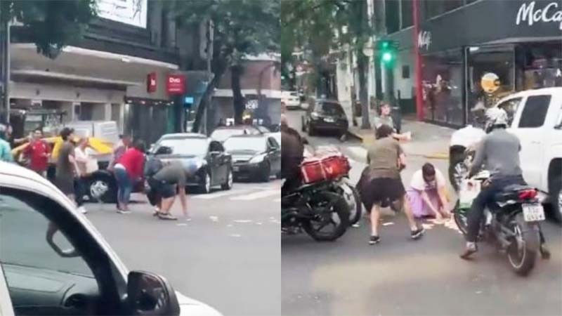 Una lluvia de billetes sorprendió a los vecinos de Colegiales, Buenos Aires, cuando un repartidor se paró en medio del cruce de las avenidas Álvarez Thomas y Federico Lacroze para recoger la plata que había perdido de su bolso.