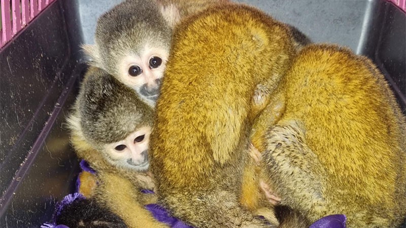 Camionero llevaba cuatro crías de mono titi dentro de una jaula para mascotas