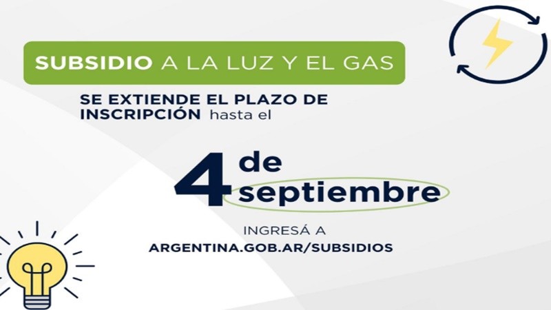 Se extendió el plazo de inscripción para solicitar el subsidio de luz y gas