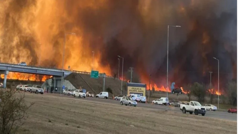 El tránsito en la autopista Córdoba-Carlos Paz estaba cortado en forma total, entre Yocsina y Malagueño, mientras que las autoridades controlaron el siniestro en una estación de servicios de marca Shell.