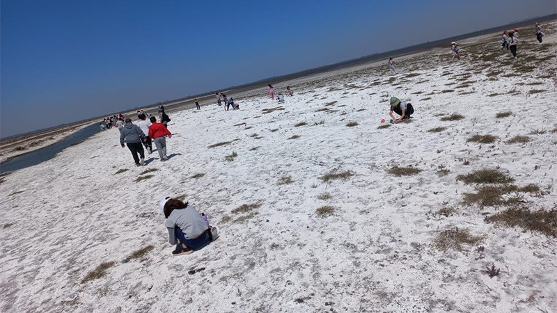La sequía dejó al descubierto un gran salar en la laguna de Melincué