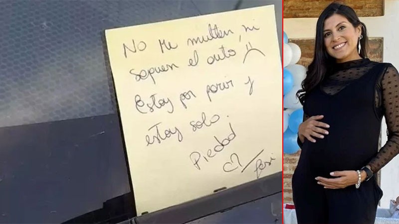Ante la inminencia del parto, dejó su vehículo estacionado incorrectamente con un pedido a los inspectores de tránsito. “No me multen ni saquen el auto. Estoy por parir y estoy sola. Piedad”, decía el cartel en el parabrisas.