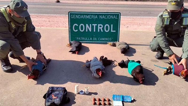 Rescataron seis gallos de riña que eran transportados en un vehículo. Estaban atados y envueltos en telas, que evitaba su movilidad. Asimismo, gendarmes hallaron dentro del rodado ocho espuelas y 19 picos metálicos al igual que dos agujas.