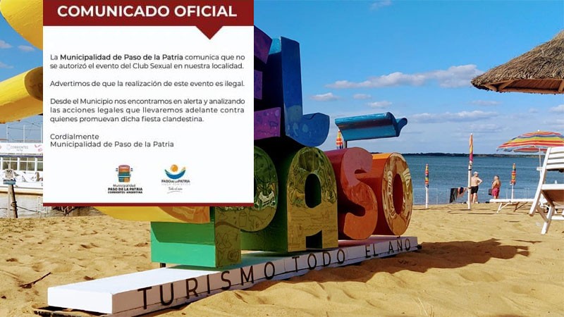 Las autoridades municipales de la villa turística de Paso de la Patria, en Corrientes, prohibieron una fiesta sexual anunciada para el fin de semana del 15 y 16 de octubre y anticiparon que analizan acciones legales contra la organización.