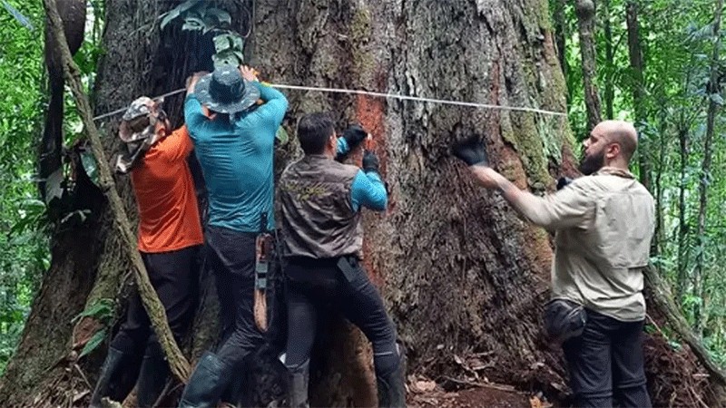 Después de acampar bajo el enorme árbol, el grupo recolectó hojas, tierra y otras muestras, que ahora serán analizadas para estudiar cuestiones como la edad del árbol (al menos entre 400 y 600 años, estima Silva) y saber por qué la región tiene tantos árboles gigantes y cuánto carbono almacenan.