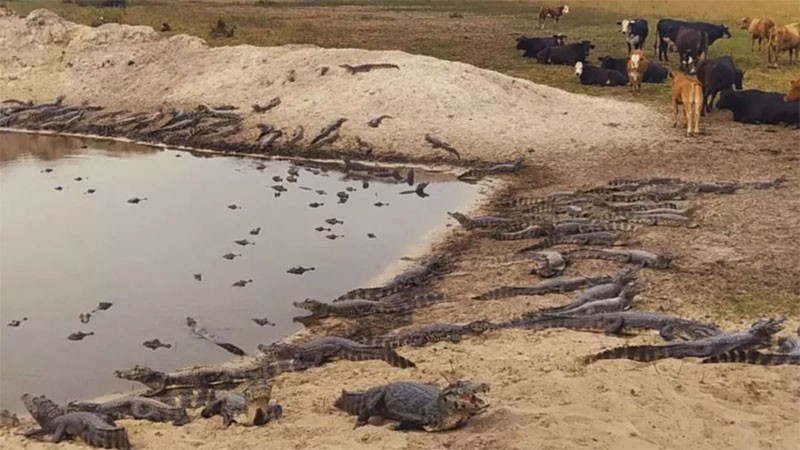 Videos: impactantes imágenes muestran cómo yacarés buscan sobrevivir a la sequía