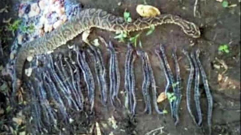 Después que esto ocurrió se dio cuenta que tenía 32 viboreznos o "pichones" en su interior.
