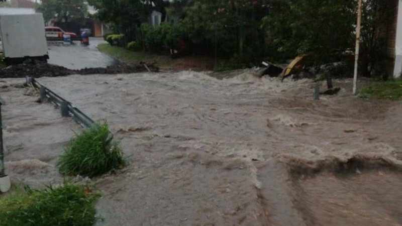 Debido a las intensas lluvias, el agua comenzó a correr con fuerza por el arroyo Antoñico, sobrepasó el nivel de la cinta asfáltica y arrastró a la máquina vial.
