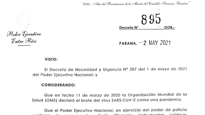 El Gobierno provincial publicó el decreto con las nuevas medidas que rigen en Entre Ríos hasta el 21 de mayo.