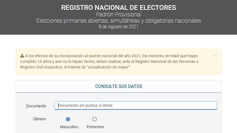 La Cámara Nacional Electoral publicó el padrón electoral provisorio para que los ciudadanos puedan consultar su lugar de votación para las Elecciones 2021.