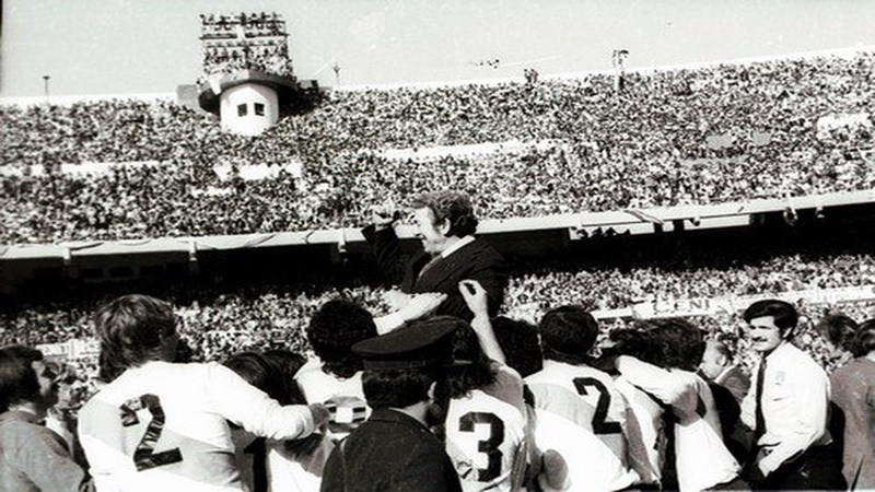 “Los equipos se arman de atrás para adelante” dice apenas llega. Toma una primera decisión, le da la titularidad a un joven Fillol por sobre un caudillo como Perico Pérez, al mismo tiempo, trae a Roberto Perfumo desde Cruzeiro, donde jugaba desde hacía cinco años. El Mariscal es resistido por los hinchas en un primer momento, viene de un mal Mundial ´74, y termina siendo pilar fundamental del equipo. A la juventud de Alonso y Jota Jota López y Morete le suma la experiencia de Perico Raimondo y Pedro Gónzalez. “Un equipo es como una columna vertebral, debe tener un buen arquero, un central impasable, un cinco que labure, un creativo como Alonso y un goleador; en los demás puestos, si quiere, ponga a su familia”. Con esa fórmula ya había salido campeón del Nacional de 1971 con Rosario Central y ahora llega al rescate de su club amado. No sin sufrir (la ventaja de ocho puntos que alcanzó a sacar se redujo a tres cuando Alonso estuvo suspendido seis fechas, la huelga de jugadores obligó a poner juveniles y que el partido del campeonato lo dirigiera el técnico de las inferiores Federico Vairo), Angelito le devolvió la gloria a River después 18 años ganando el Metropolitano de 1975. A ese título se le sumarían tres Metro más (´77, ´79 y ´80) y dos Nacionales (´75 y ´79). Después de que lo reemplazaran por Di Stefano, volvió a dirigir a Talleres y Argentinos Juniors.