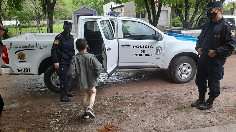 El patrullero estaba a cargo de Nanci Carballo, jefa de la Comisaría del Menor y el oficial Javier Camarano, ambos se mostraron muy contentos de llegar a un chico que sueña el día de mañana ser policía.
