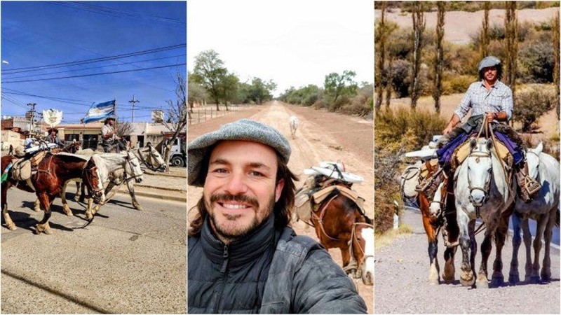 Desde entonces ha pasado por 16 provincias, entre ellas Entre Ríos. Organizó la ruta en función del pasto y el agua para sus tres caballos: Mora, Wayra y Tordo.