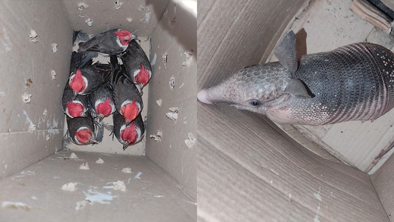 Al inspeccionar el rodado, los gendarmes detectaron tres ejemplares de la especie “tatú mulita”, dos de los cuales estaban muertos, como así también ocho cardenales cresta roja.