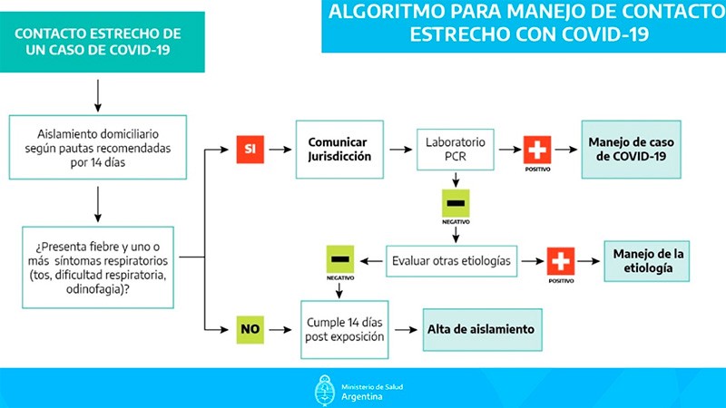 Se indicará aislamiento domiciliario por un periodo de 14 días. El contacto deberá tener un mail y teléfono del referente jurisdiccional para mantenerse comunicado.