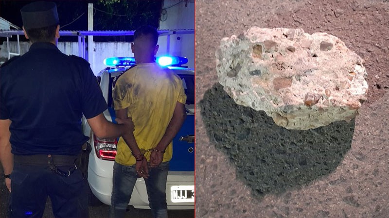 Amagó con arrojar piedra de gran tamaño contra policías y terminó detenido