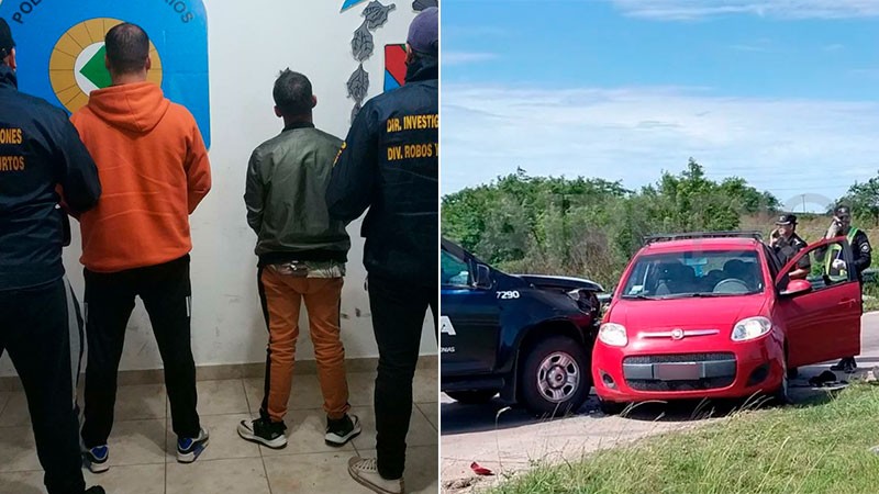Acechados por la fuerza pública, los delincuentes abandonaron en auto, logrando tres de ellos escapar por el campo, mientras que dos fueron arrestados.