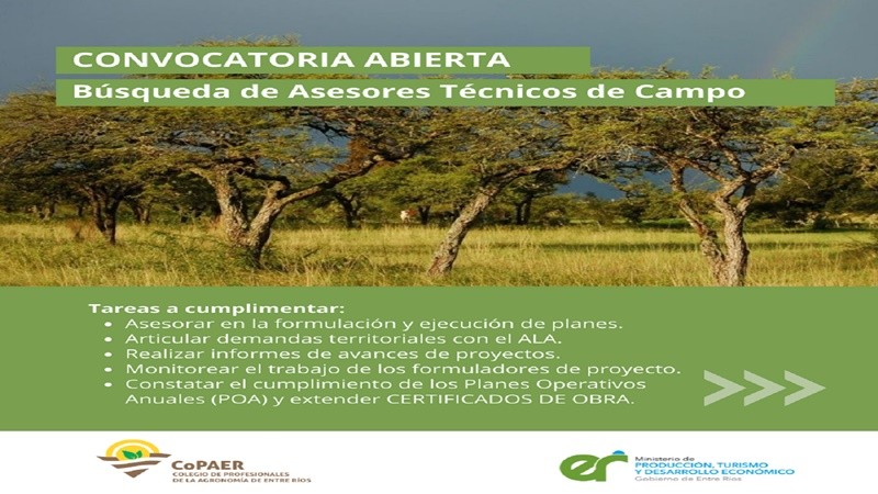 Los interesados en postularse a esta convocatoria, realizada a través del Colegio de Profesionales de la Agronomía (Copaer), deberán cumplir con los siguientes requisitos: