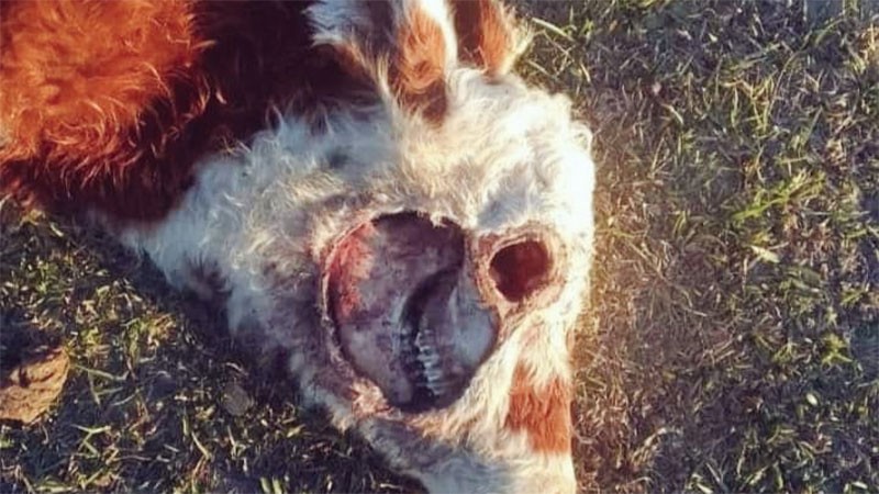 Hallaron un ternero muerto con una extraña marca en la cabeza