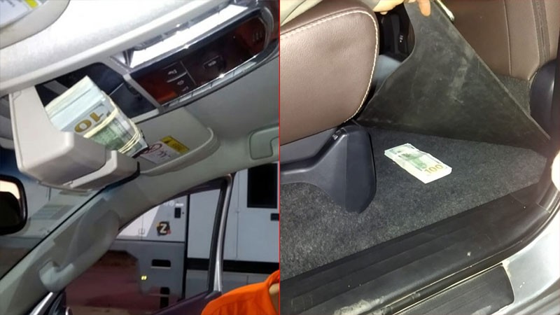 Desde la Fuerza de Seguridad informaron que “al momento de la inspección del rodado, los funcionarios observaron la presencia de ocho fajos con dinero extranjero distribuido en el interior de una carpeta con documentación, en la solera del habitáculo para lentes, debajo de la alfombra del asiento trasero detrás del acompañante y adosados a cuerpos”.