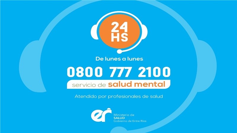 Desde el mes de noviembre, el Ministerio de Salud de Entre Ríos pondrá en funcionamiento la línea gratuita 0800-777-2100 para la atención de urgencias en salud mental y riesgo suicida.