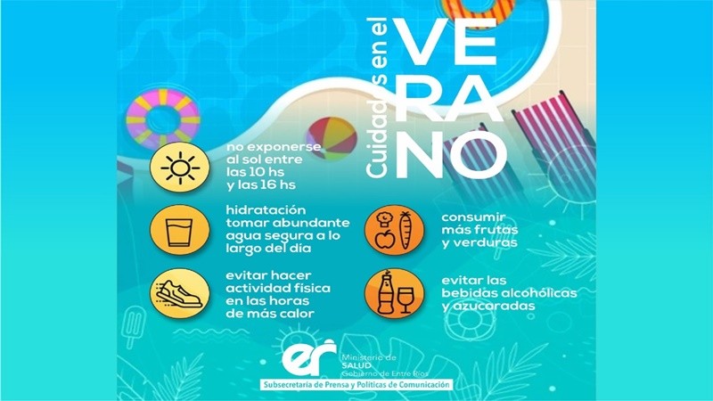 Los golpes de calor, las quemaduras solares, los cuadros diarreicos, la otitis y las lesiones no intencionales son problemas que se pueden prevenir con medidas de cuidado básicas. Por ello, el Ministerio de Salud de Entre Ríos reiteró las recomendaciones para que los chicos disfruten del verano.