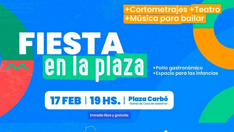 Este viernes 17 de febrero, en el inicio del feriado de carnaval, la Vicegobernación, el Senado y la Secretaría de Cultura ponen en marcha "Fiesta en la Plaza" una propuesta que incluirá cortometrajes, teatro y música para bailar. Será en la Plaza Carbó, detrás de Casa de Gobierno, desde las 19.