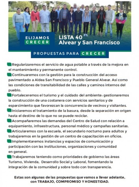 Estas son algunas de las propuestas que vamos a llevar adelante, con TRABAJO, COMPROMISO Y HONESTIDAD