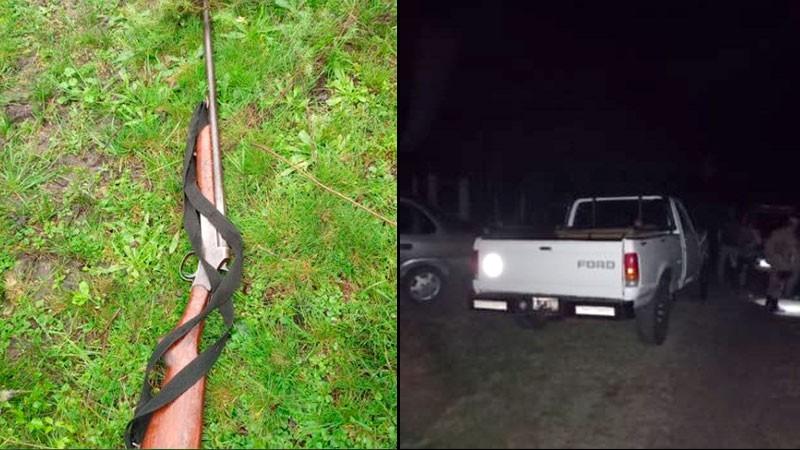 Otra de las detecciones de cazadores, se llevó a cabo en el camino de tierra a Las Gamas, donde se observó la presencia de dos vehículos estacionados frente a un portón de chacra. Las unidades se encontraban sin ocupantes, por lo que se activó una búsqueda, logrando horas después dar con cinco ciudadanos llevaban tres armas de fuego, cargadas y no contaban con documentación.