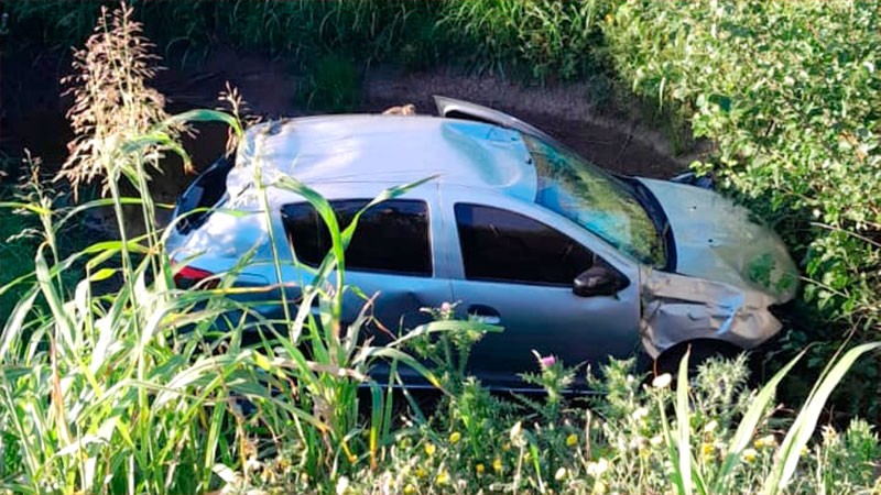 Tras el despiste, el auto chocó contra un guardarrail y lo derribó, salió hacia la banquina y cayó en una alcantarilla a la vera de la ruta.