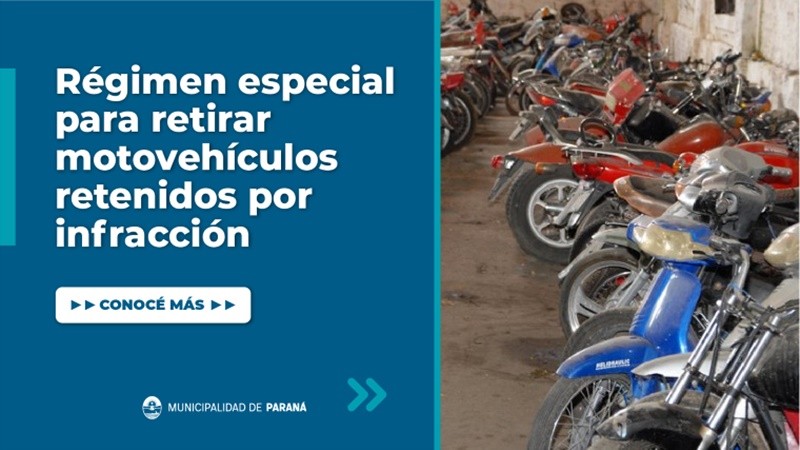Así lo anunció la Municipalidad. Quienes deseen recuperar el rodado que se encuentra en depósito, deberán concurrir al Juzgado de Faltas en calle 9 de Julio 370, previa solicitud de turno en el portal ciudadano Mi Paraná (https://mi.parana.gob.ar/)