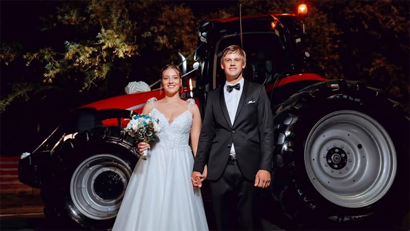 La pareja se conoce hace 10 años, gracias a que Federico le prestaba servicios de cosecha al papá de Yanina. Este año decidieron afianzar su amor dando el “sí” en Valle María, donde comparten sus raíces, junto a su familia y la mayor parte de sus amigos. “Tomamos la decisión de llegar con el tractor a nuestra boda porque hace mucho tiempo vemos publicaciones de novios que ingresan a su casamiento con máquinas agrícolas y nos gustó mucho esa idea”, explicó Yanina, y agregó: “fue entonces que decidimos que el tractor Puma 230 fuese nuestro compañero en este camino, aprovechando también que hace poco habíamos adquirido el equipo”.