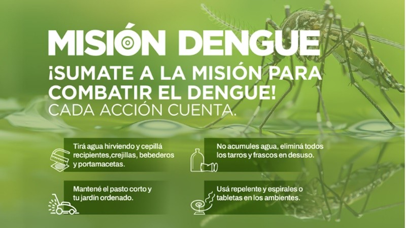 Misión Dengue es la estrategia definida por el Ministerio de Salud de Entre Ríos para prevenir esta enfermedad. Uno de los ejes de la campaña se centra en la comunicación y difusión de acciones, que permite a la comunidad realizar tareas efectivas como la limpieza, que evita la proliferación del mosquito Aedes Aegypti.