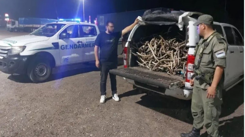 De la inspección de la caja del rodado, los uniformados constataron la existencia de 400 astas de ciervo (con un pesaje total de 240 kilos) de diferentes tamaños, las cuales eran trasladadas sin la guía correspondiente.
