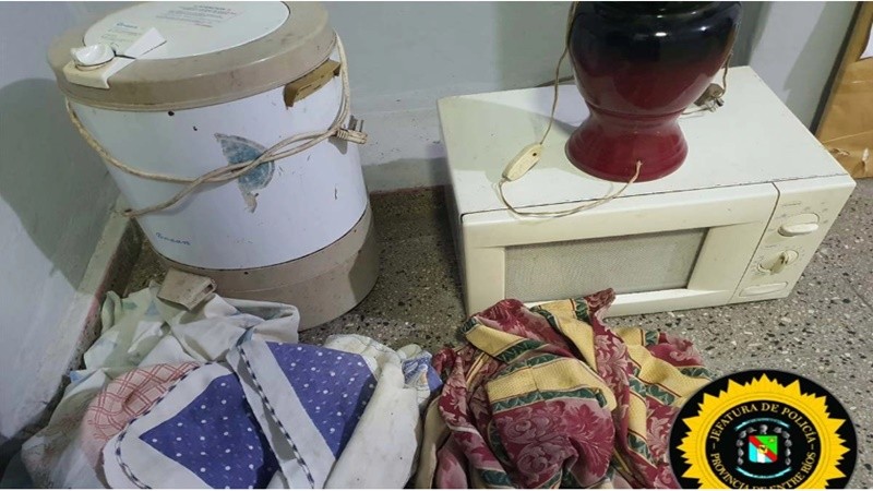 Los delincuentes sustrajeron varios objetos de valor, entre ellos un microondas, un equipo de música, un secarropas, un velador marrón, tres manteles y ropa.