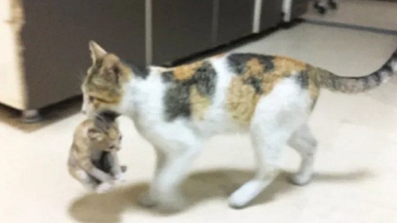 La gata llevó a su cachorro por el cuello e irrumpió en la sala de urgencias de un hospital sorprendiendo a médicos, enfermeras y pacientes.
