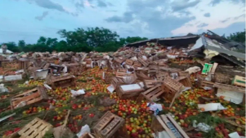 Tras el accidente, vecinos de la zona se acercaron al lugar y comenzaron a llevarse parte de la carga esparcida sobre la ruta. Cajas de tomates, morrones y otros vegetales quedaron desparramadas por varios metros, lo que generó demoras en el operativo de rescate y limpieza.