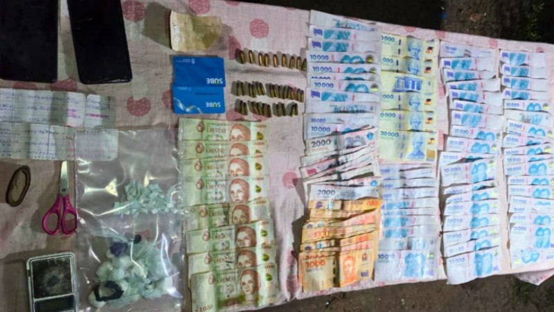 Al momento de la detención, la policía procedió al secuestro de importantes elementos relacionados con el narcotráfico y el mercado ilegal de armas. Se trata de 28 envoltorios de cocaína (pesaje total de 42,6 gramos); 9 cartuchos calibre 32 y 24 cartuchos calibre .22; 866.800 pesos argentinos y 8.000 pesos uruguayos; y balanza de precisión, dos teléfonos celulares y elementos de corte.